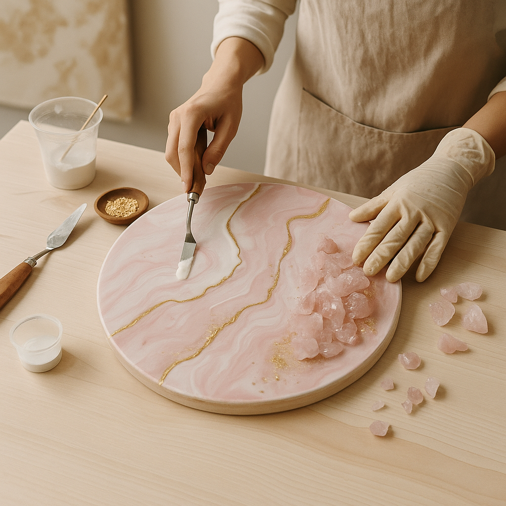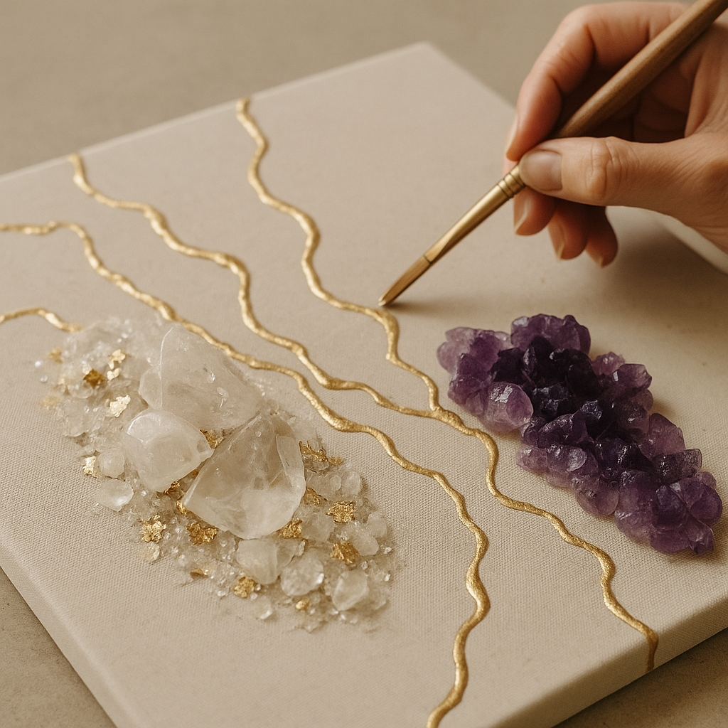 Each By Becca piece is created with a balance of artistry and intention. Using a combination of fine art techniques and jewellery craftsmanship, Becca works with materials such as resin, gold leaf, crystals, and natural gemstones. Every detail — from colour blends to textural layers — is chosen to reflect harmony and timeless beauty. Pieces are produced in small batches in the London studio, ensuring each artwork and jewellery design feels personal, enduring, and one of a kind.